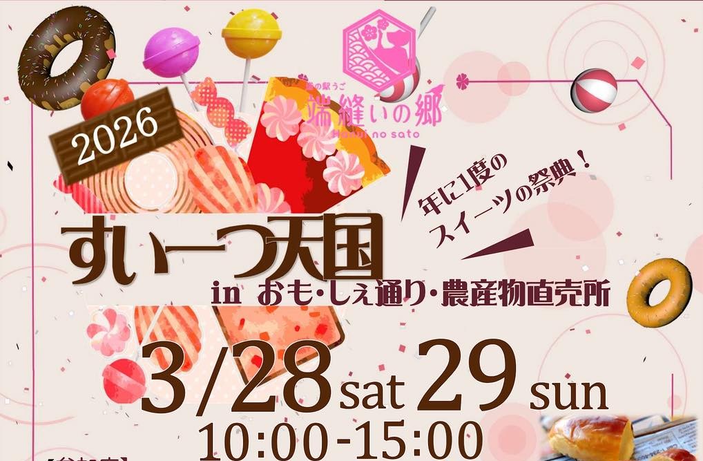 羽後町道の駅うご端縫いの郷では3月28日㈯、29日㈰に年に一度の「すいーつ天国」を実施します。県内外のスイーツが道の駅に大集合。