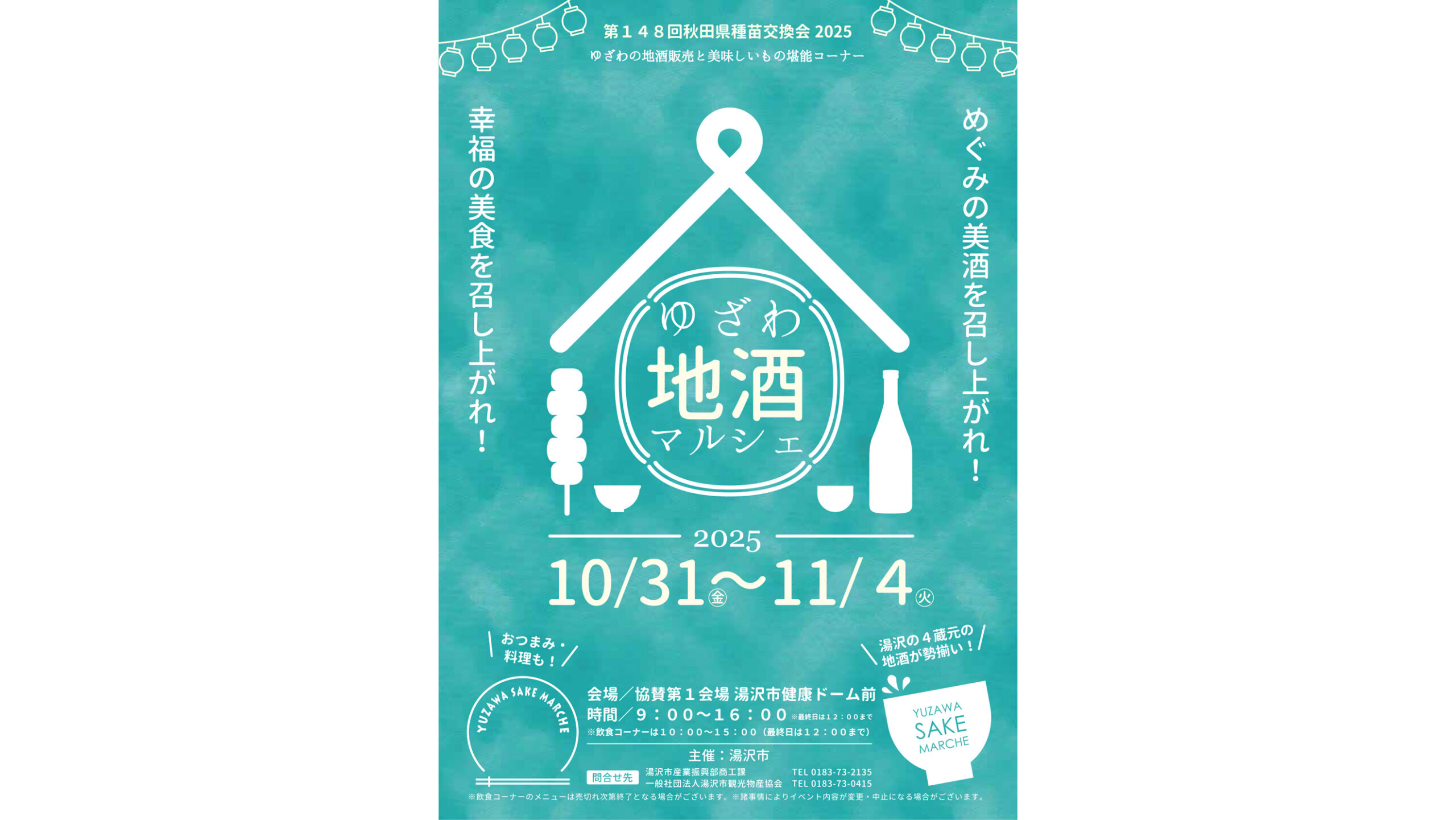 湯沢市では10月31日(金)~11月4日(火)に第148回秋田県種苗交換会内で「ゆざわ地酒マルシェ」を開催します。